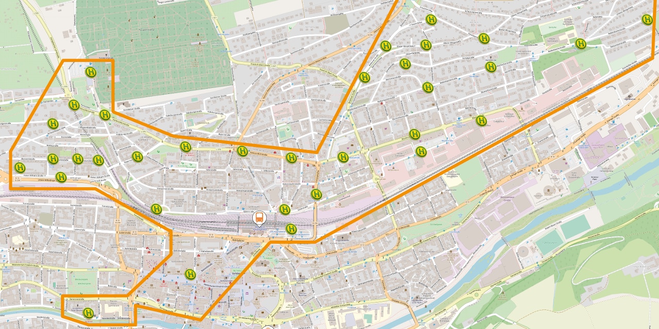 Du wirst an einer unserer Haltestellen im Bediengebiet abgeholt. Die Haltestellen setzen sich aus aktiven Bushaltestellen, sowie neu errichteten Haltestellen zusammen. Die Haltestellen erkennst du an einem PforzheimShuttle-Aufkleber.